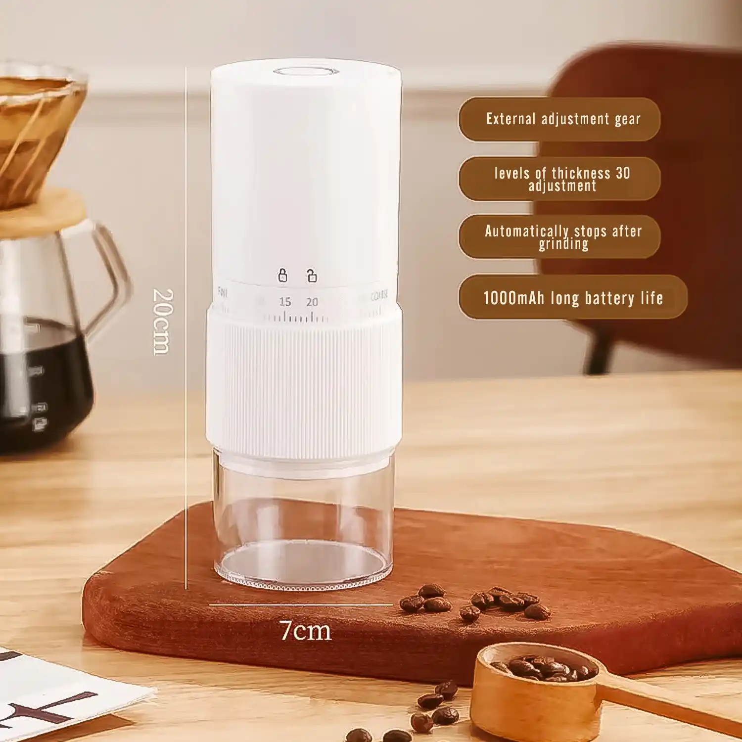 Whether for your morning espresso, French press, or pour-over, this electric grinder makes fresh coffee simple and enjoyable wherever you are.