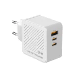 65W GaN Fast Charger 3-in-1 USB A + Dual Type-C Wall Adapter