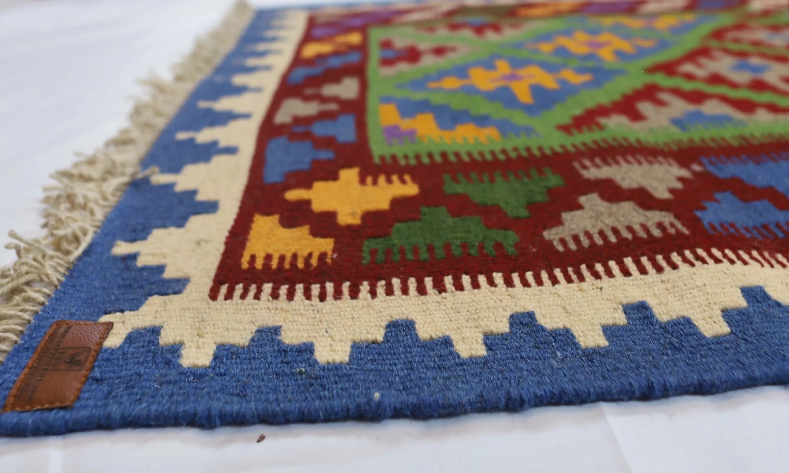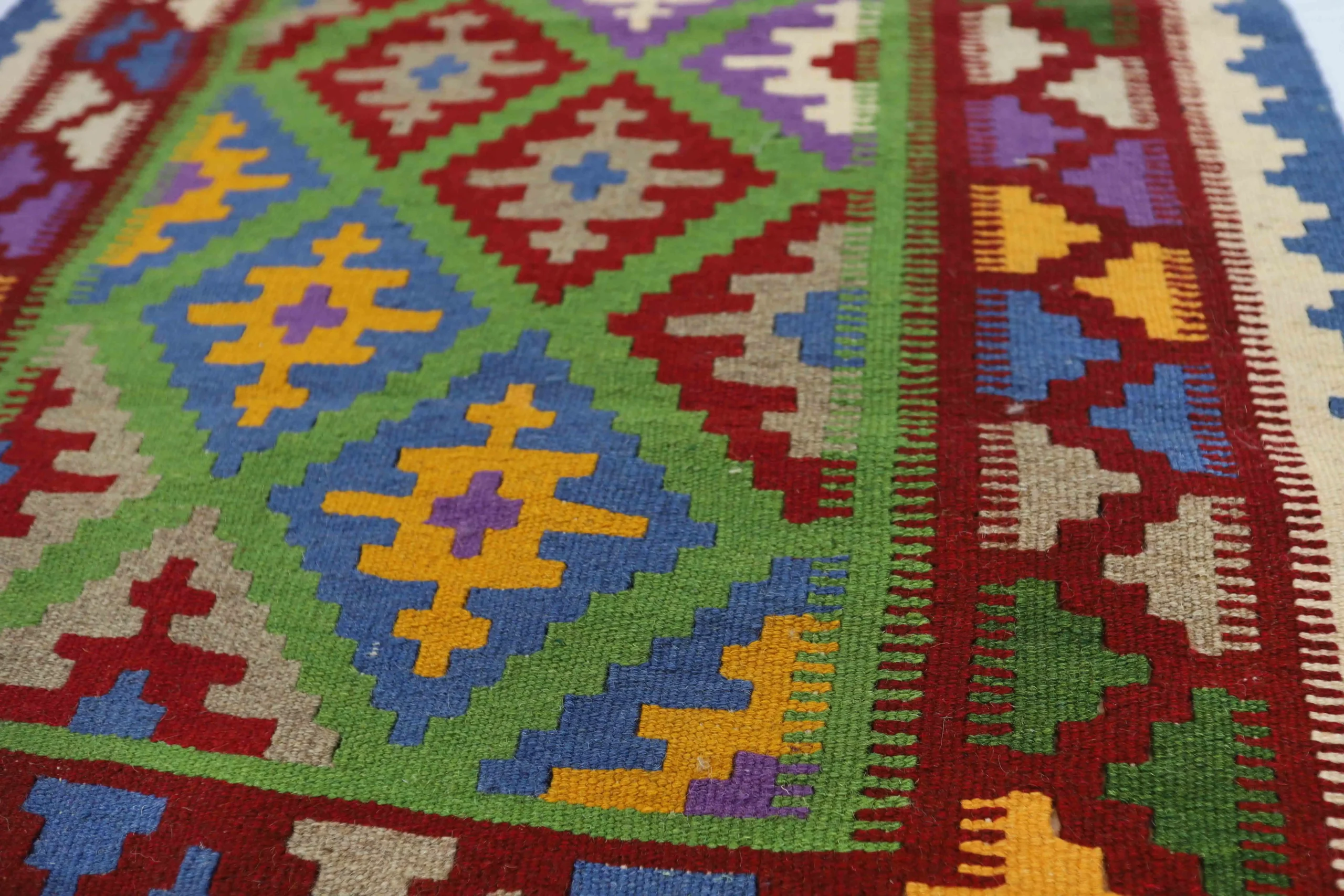 This kilim is also a sustainable choice: because it is entirely handwoven, it carries a minimal carbon footprint. The wool used is ethically sourced by shearing live sheep, ensuring that animal welfare is fully respected—no harm, no cruelty. Unlike chemically treated or tanned wool, which significantly reduces the quality of the final product, this natural wool preserves its strength, softness, and durability, resulting in a longer-lasting, high-end piece.