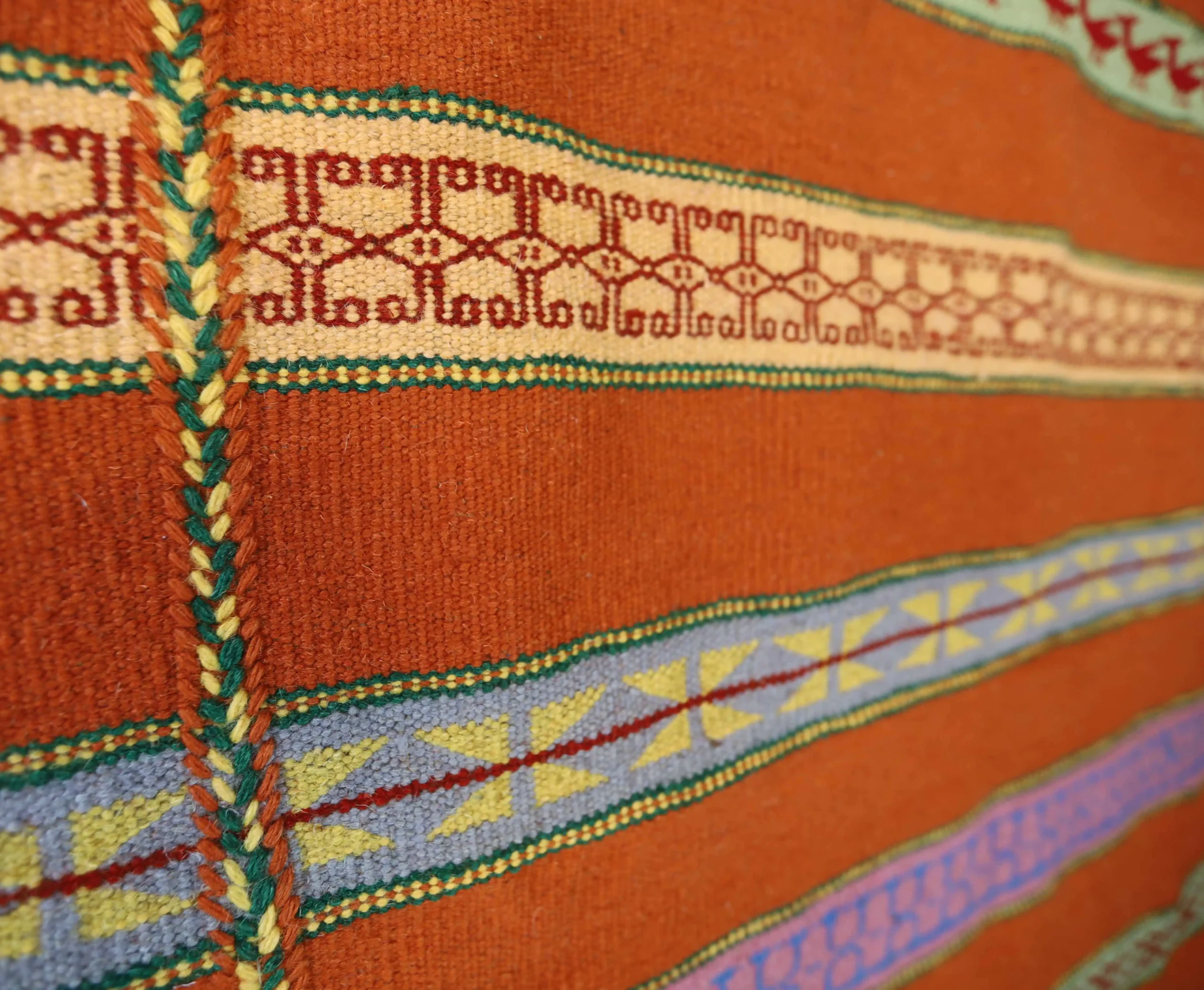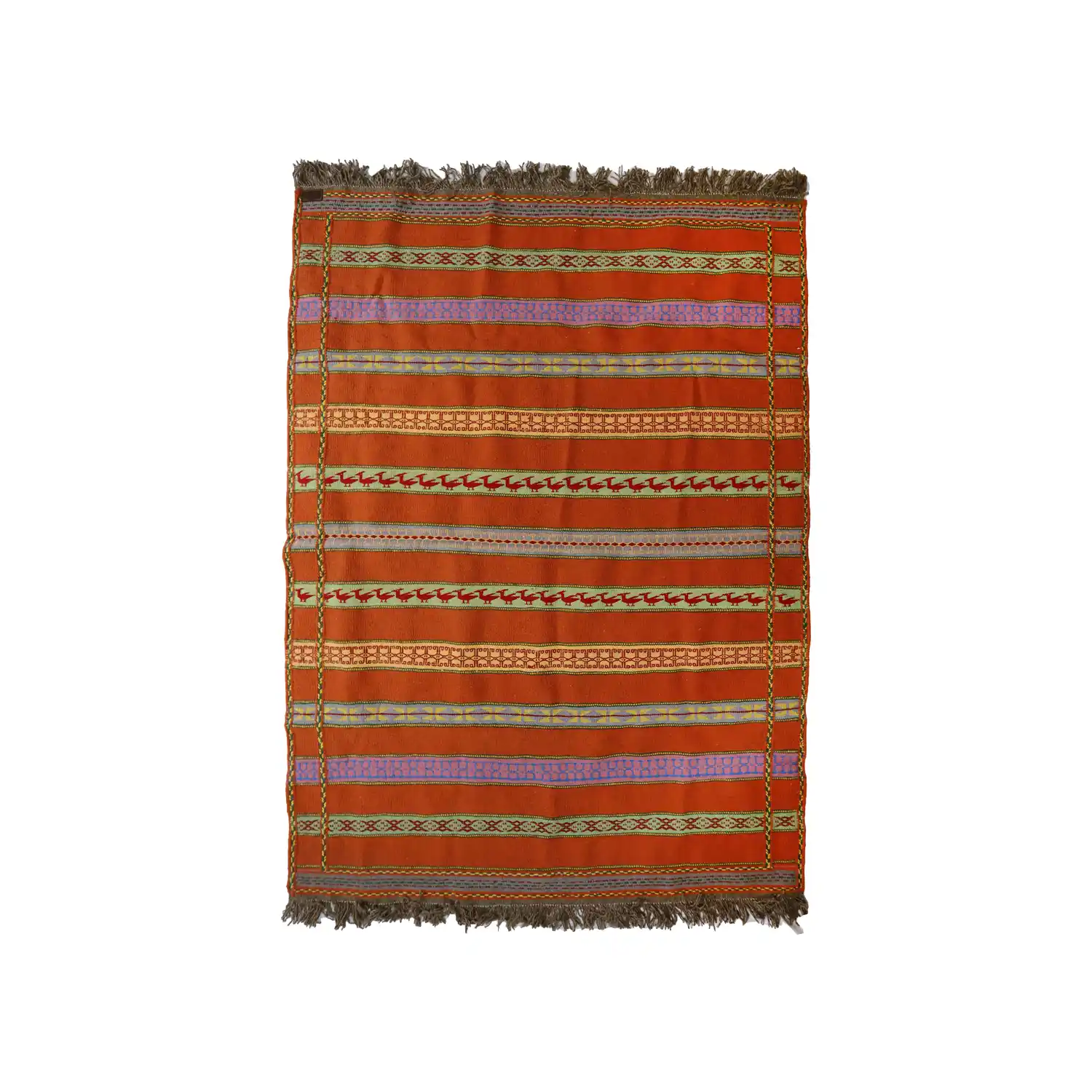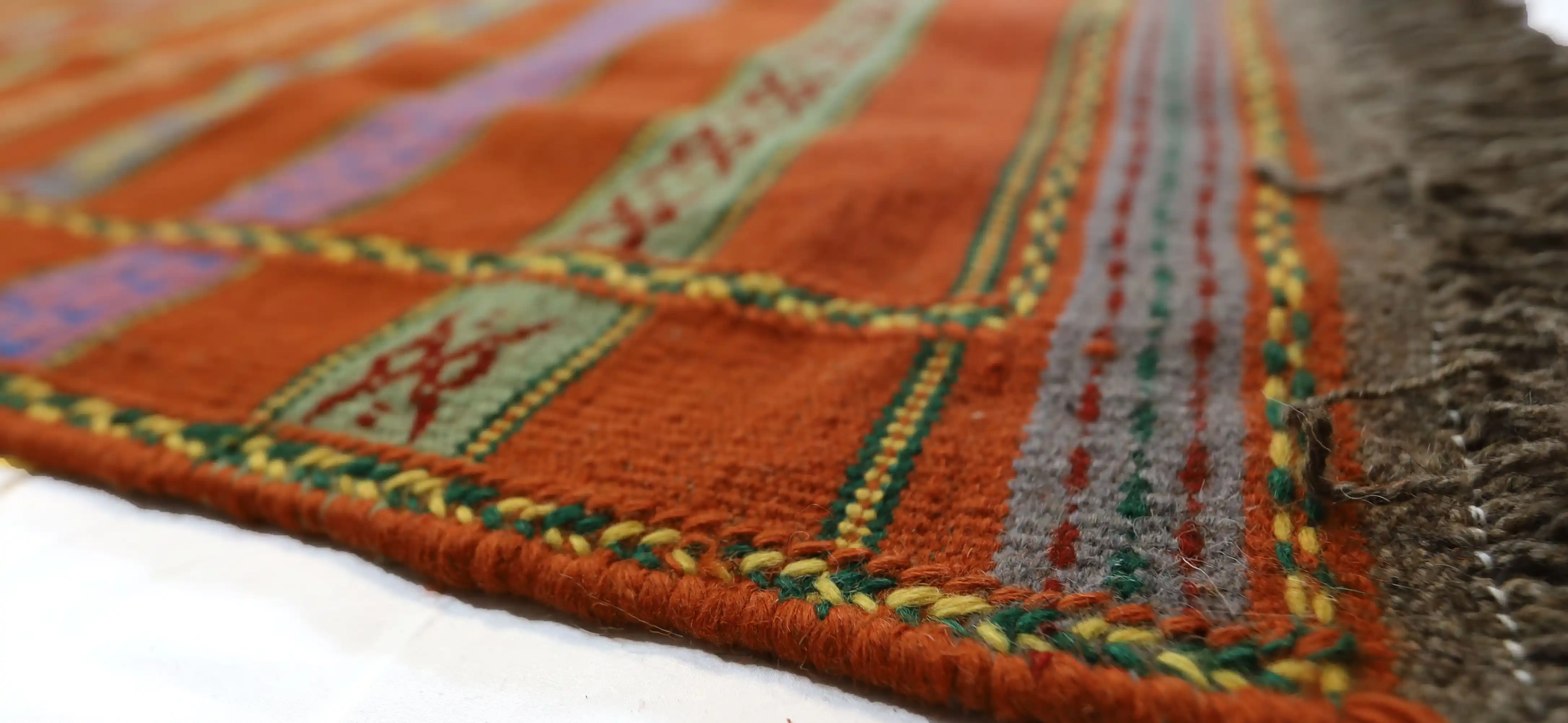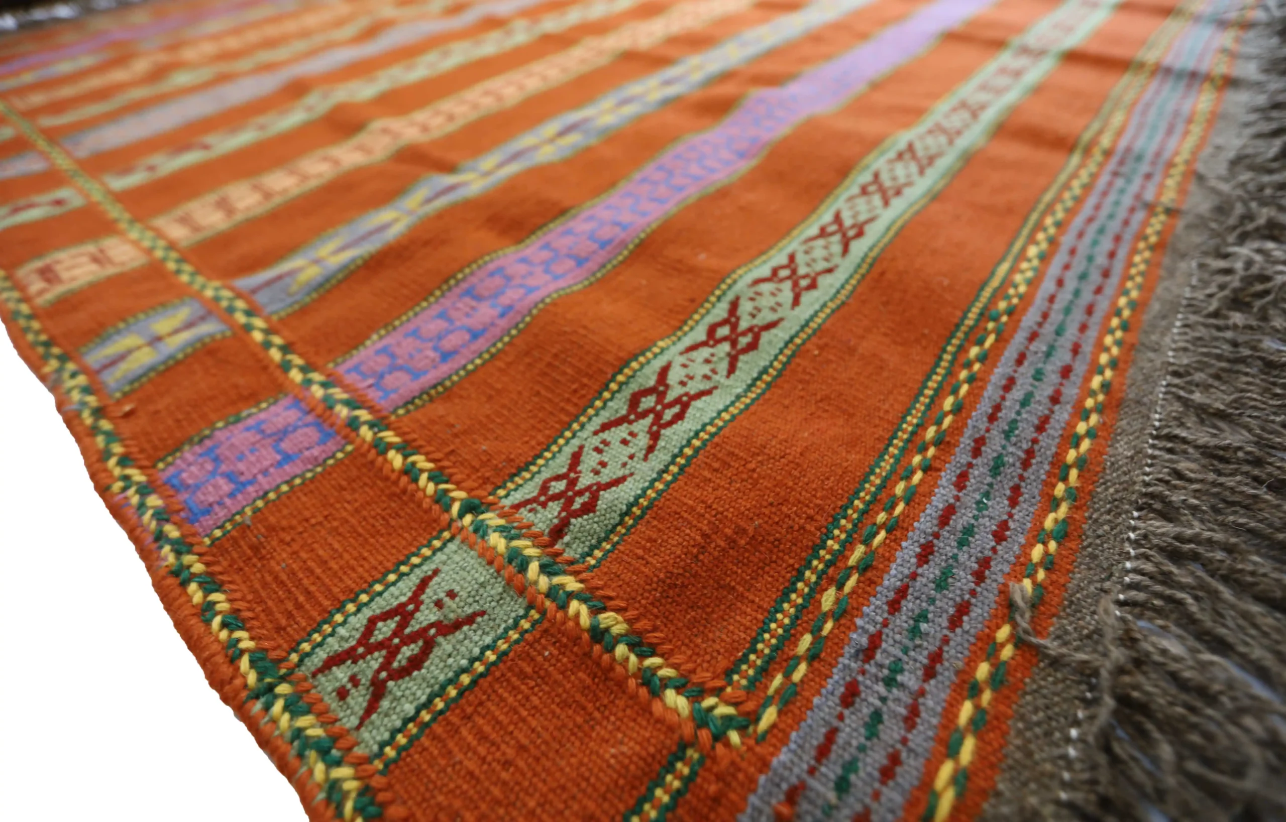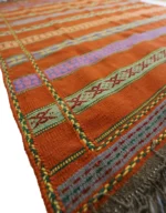 This kilim is not only beautiful but also ethical and eco-conscious. Made entirely by hand, it carries a very low carbon footprint. The wool used is ethically sheared from live sheep, ensuring that no harm is done to the animals—fully respecting animal welfare standards. This also results in a higher-quality product, as tanned or chemically processed wool tends to reduce the softness, strength, and longevity of the final piece.