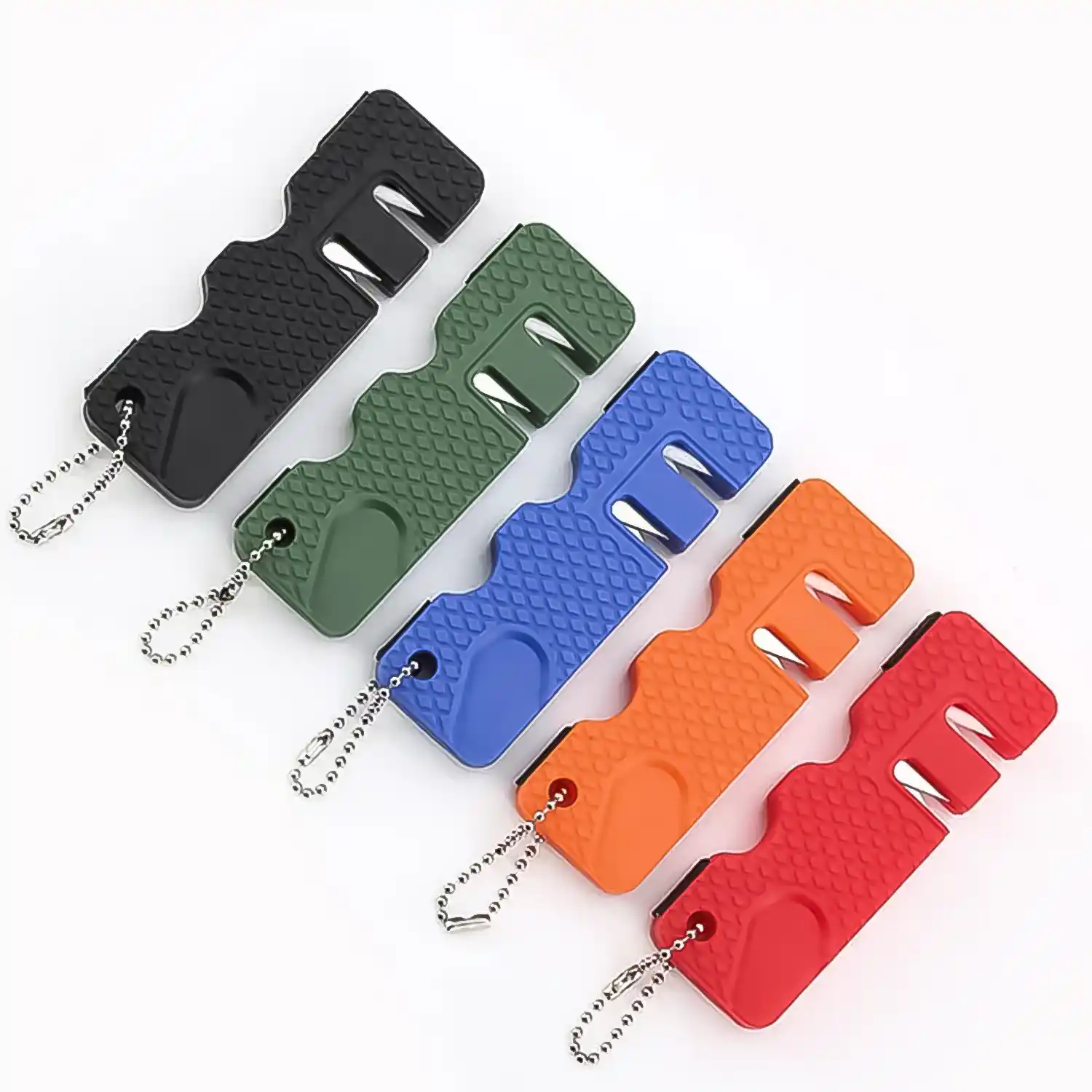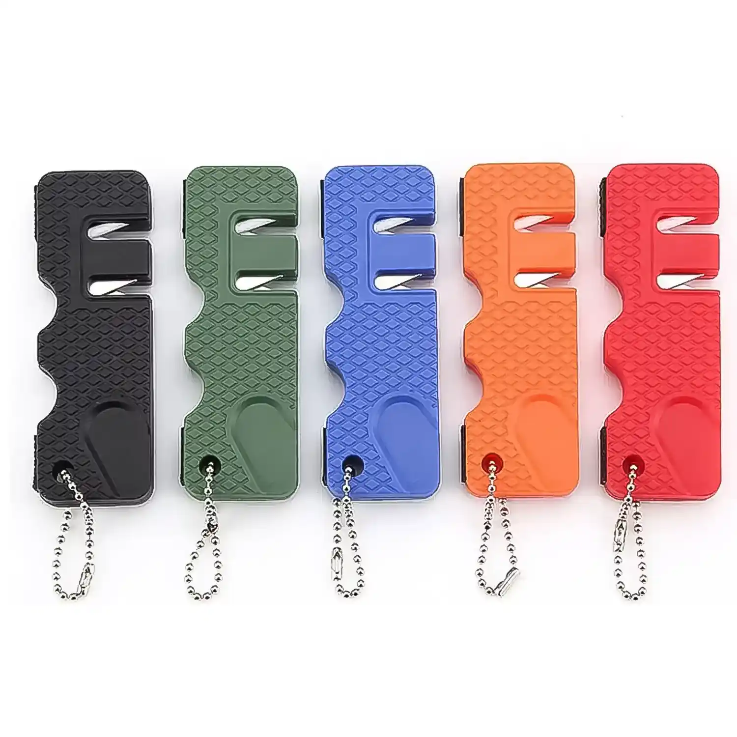 The non-slip matte finish ensures a firm grip during sharpening, while the groove design allows for stable, accurate results. Whether you’re preparing a meal outdoors or maintaining your survival gear, this pocket-sized tool is a must-have. Available in five colors — blue, black, green, orange, and red — to match your style.