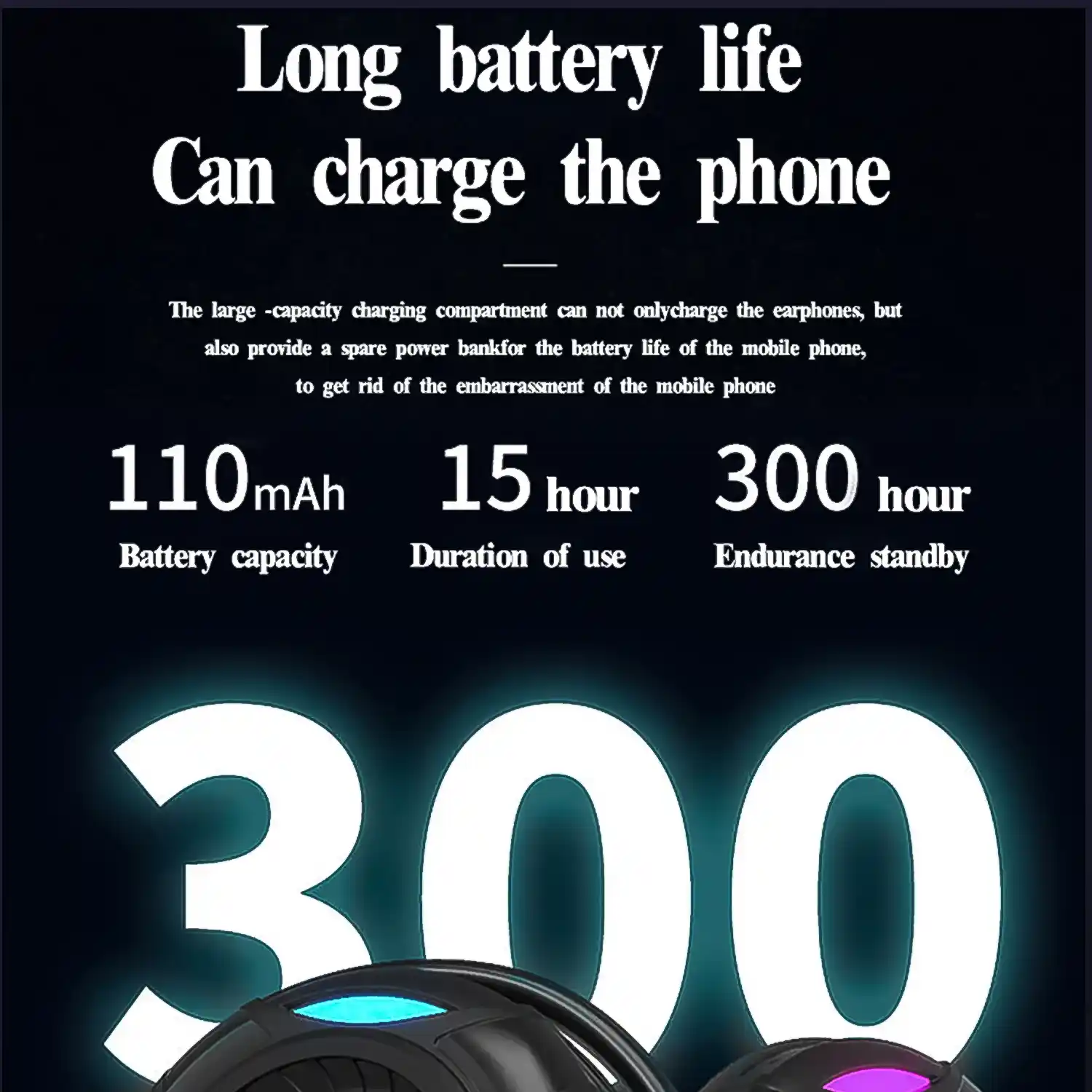 Enjoy extended usage with a long battery life — up to 15 hours talk time and 300 hours standby, powered via Type-C fast charging. Perfect for travel, workouts, and mobile gaming.