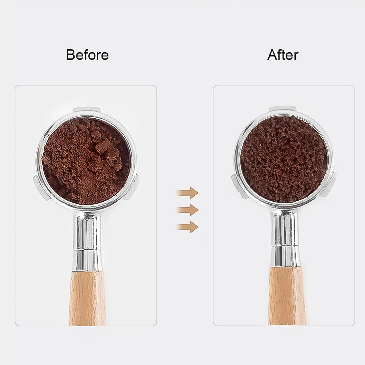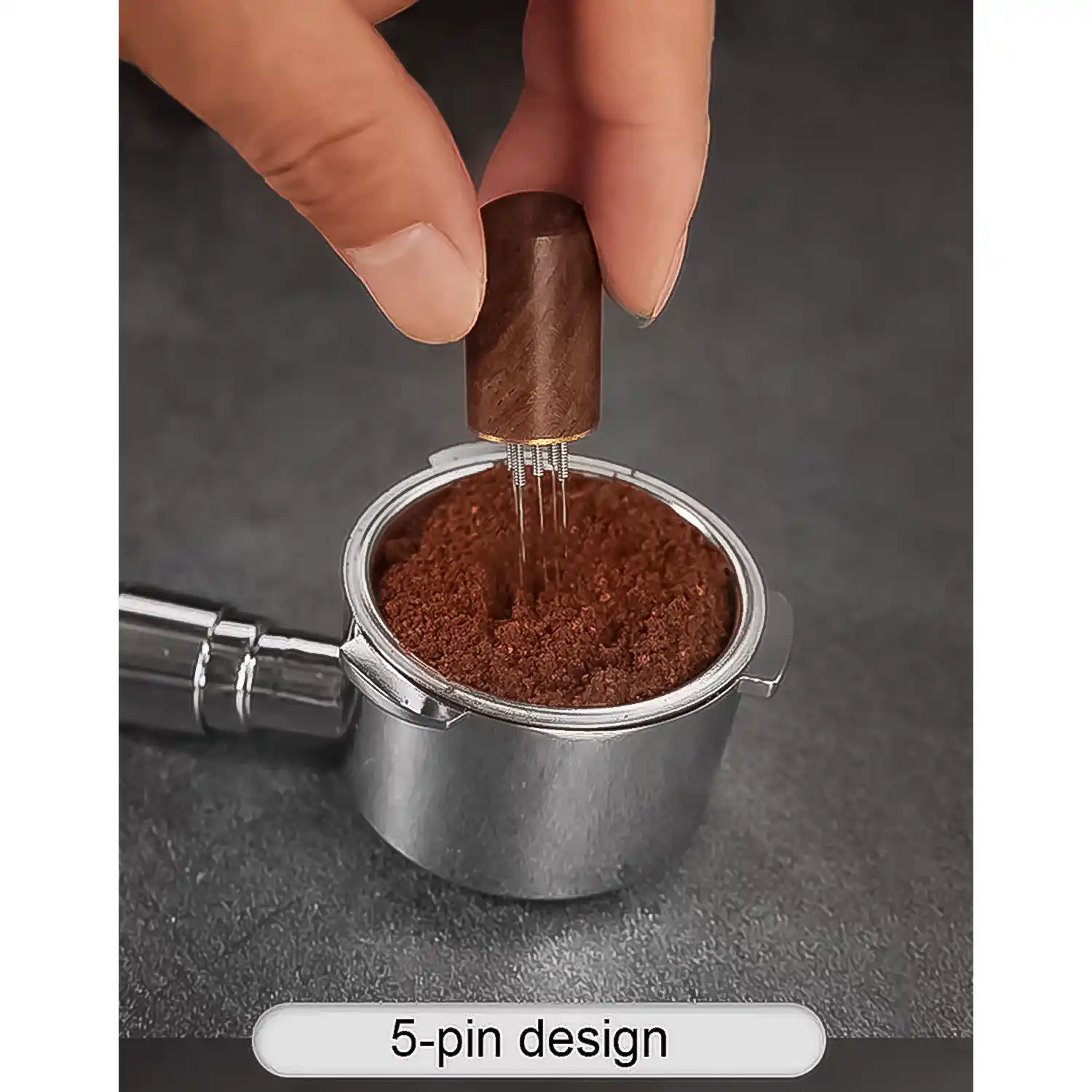 Hand stirring design to break clumps and improve espresso extraction