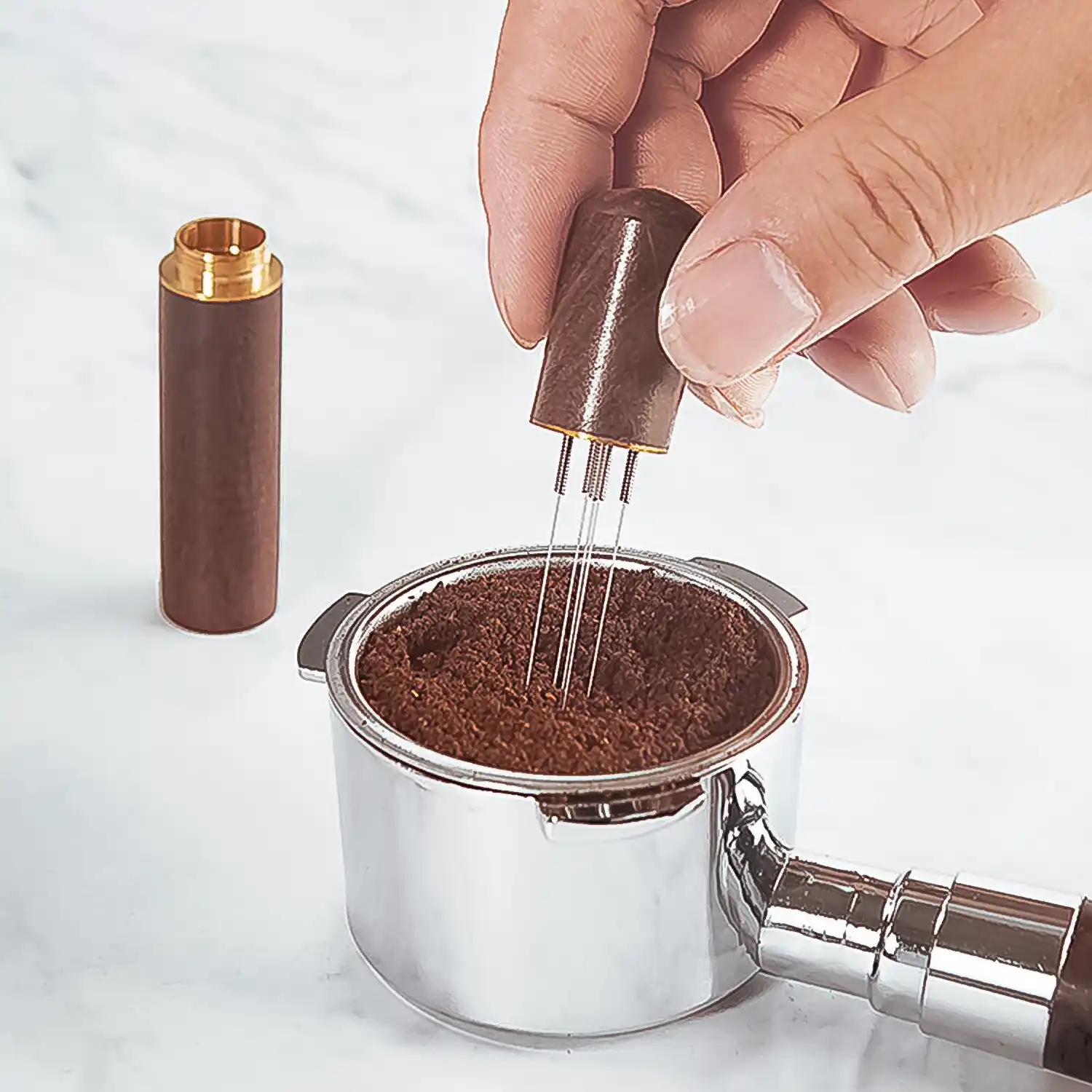 Stainless steel needles for precise coffee distribution
