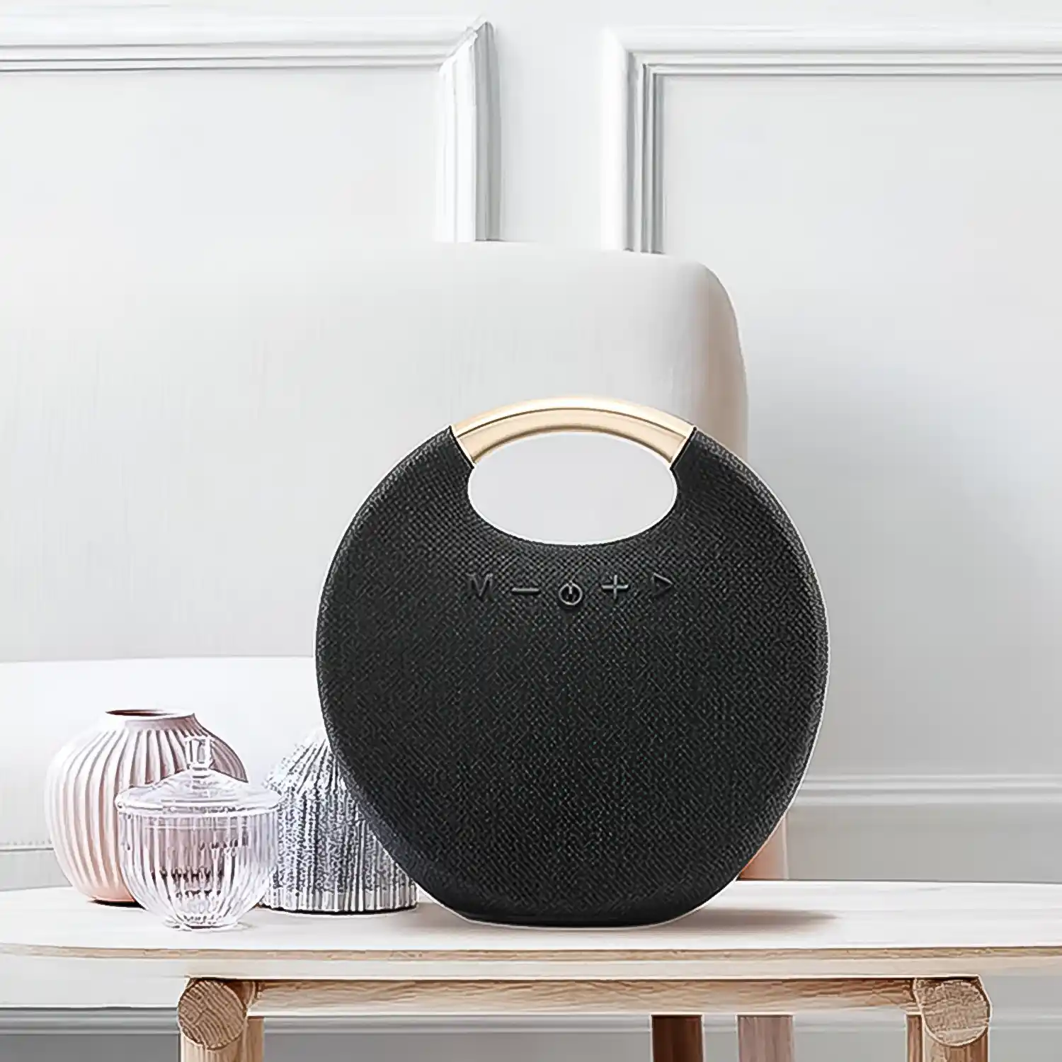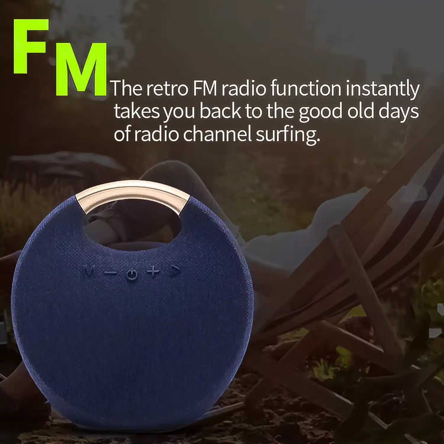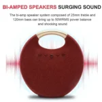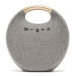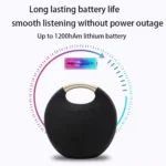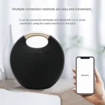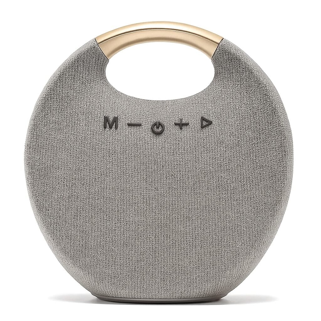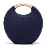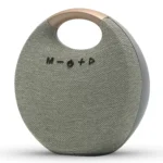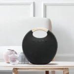 Its fabric-covered round design not only looks stylish but also provides a splashproof surface, perfect for outdoor adventures, camping, picnics, or beach parties. Whether you’re relaxing at home or setting the vibe at a party, this speaker combines style, durability, and premium sound performance in one portable device.